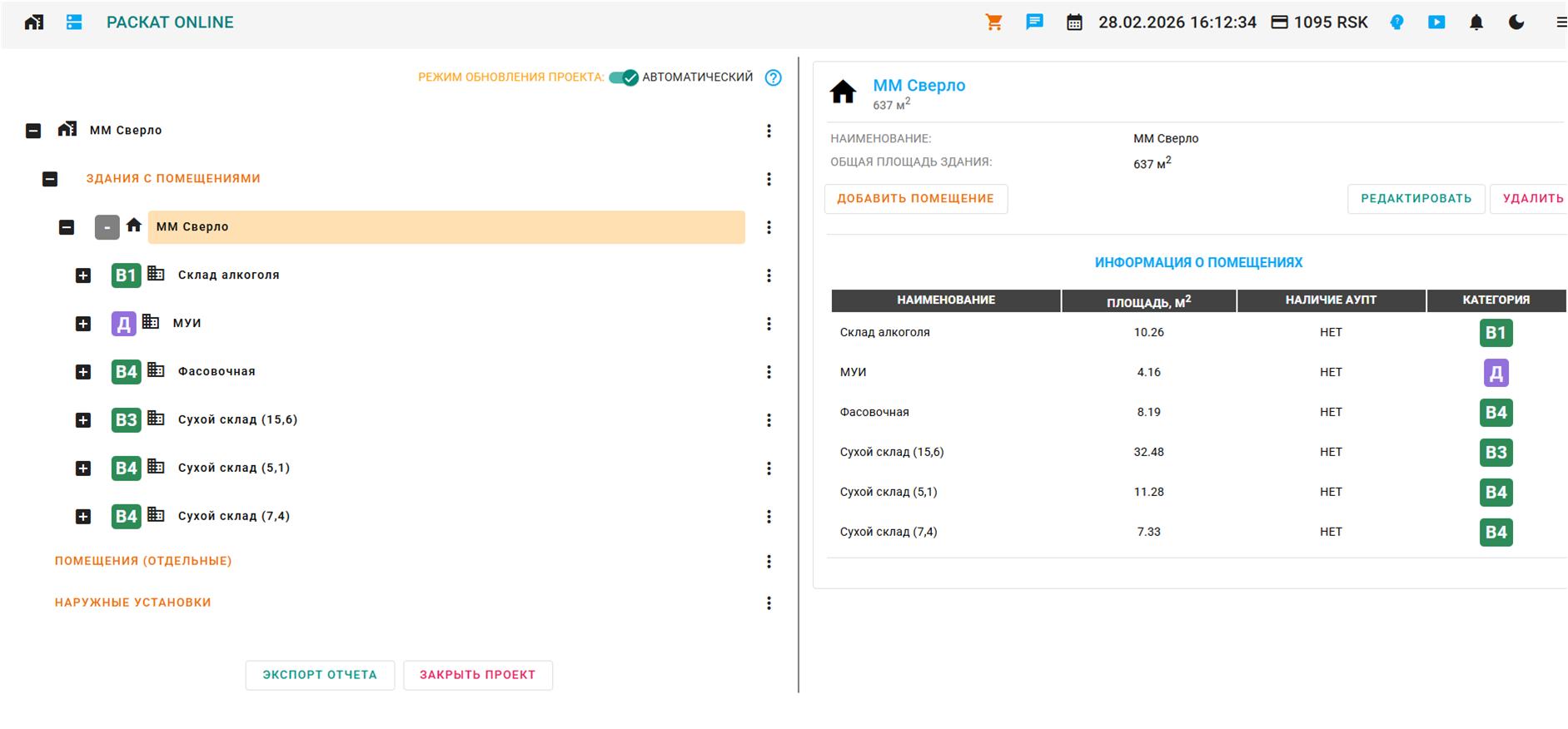 Расчёт категорий пожарной и взрывопожарной опасности помещений, зданий, наружных установок