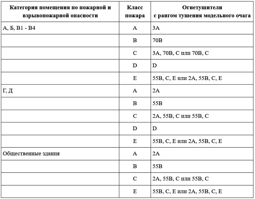 Для помещений, в которых одновременно хранятся материалы разных классов пожарной опасности, подбираются универсальные огнетушители или приборы разных типов.