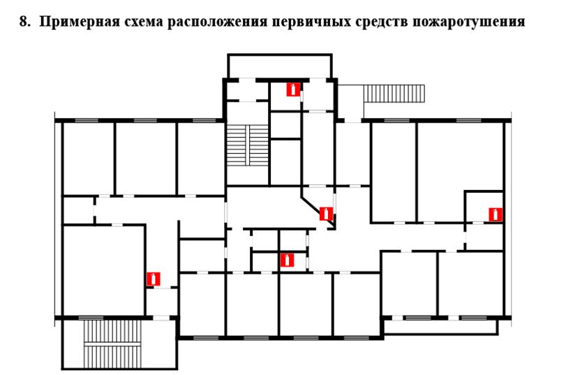 Для многоэтажных общественных и производственных зданий огнетушители размещают на каждом этаже в требуемом количестве. Если объект оснащён автоматической пожарной сигнализацией (АПС), то необходимое количество огнетушителей может быть уменьшено в два раза от нормы.