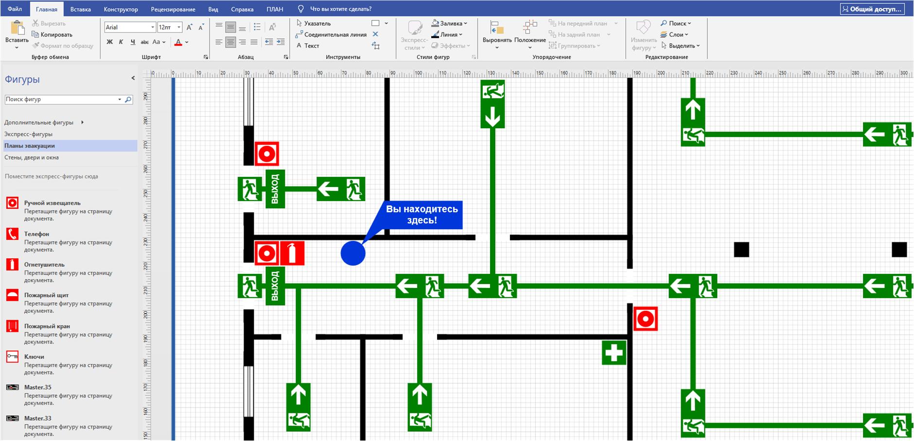 - сводный план эвакуации представляет собой общий план здания (сооружения);